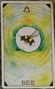 From the Animal Spirit Deck: The Bee: Earnest, hardworking, and democratic, the bee is sensitive to its surroundings and consistent in its energetic output. They are generally joyful and bustling but can often overwork themselves and experience burnout. When we see this card, it’s a good time to check in with how we are feeling. The energy of the summer may be pulling us to partake in a lot of activity, but maybe what we really need is a time of rest.